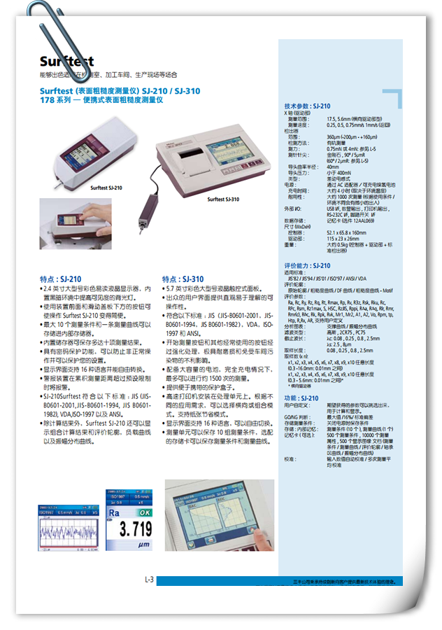 適合生產(chǎn)現(xiàn)場使用的便攜式粗糙度儀SJ-210